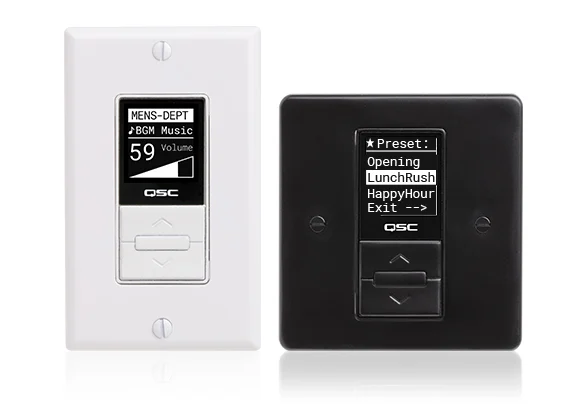 Los controles MP-MFC son controles de pared intuitivos que permiten ajustar a medida el sistema en la serie de mezcladores MP-M para música y voceo. Permiten seleccionar la fuente multi-zona, las escenas y controlar el volumen. Los diseñadores pueden configurar estos periféricos de control para ofrecer al usuario final justo el nivel de control del sistema que sea necesario.