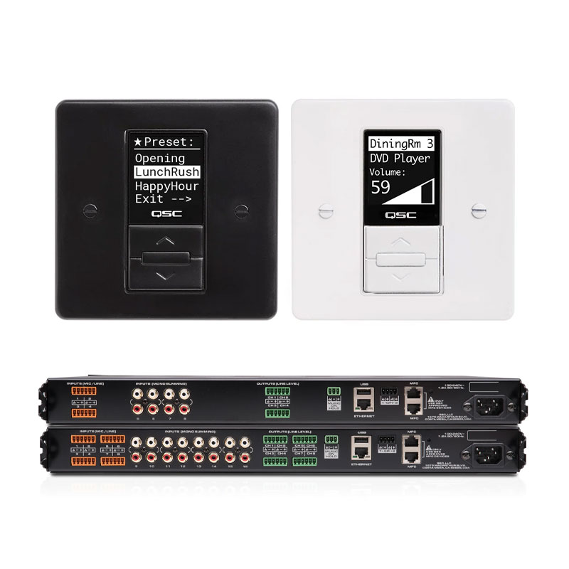 Los mezcladores de la serie MP-M tienen la misma apariencia estética que la serie de amplificadores de zona para música y megafonía MP-A de QSC, para que la instalación tenga una apariencia tan buena como su sonido.